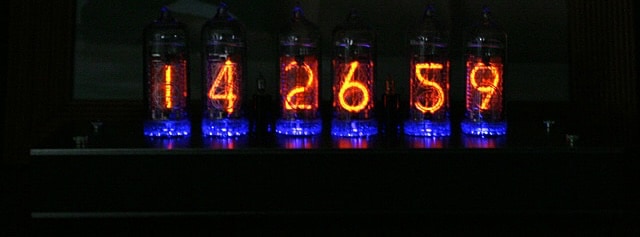 The clock looks really nice in the dark, and is really restful to watch, thanks to the softwares "digit fading effect". Note the '2' digit is an inverted '5' (or visa versa?), a characteristic of the Russian IN14 Nixie tubes. The tubes are 55mm high, and the digits are 18mm. With the original design, there was some 'ghosting' visible when the voltage supply was set too high (eg, which might occur in order to increase the brightness), an Anit-ghosting modification fixed this phenomena, and also improved the digit sharpness.