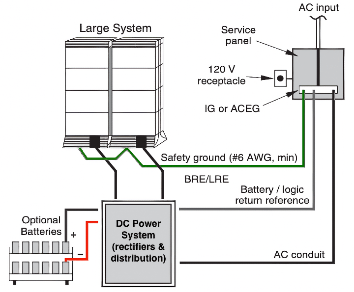 Optional batteries: As the PBX, rectifiers and batteries are connected in parallel, for maintenance, you can safely set the 'Battery Isolation Breaker' to OFF and the PBX will continue to run from the MFA150/MPR25 rectifier stack. Phone systems are positive ground, which means the battery positive lead is strapped to ground. Nortel uses BLACK for POSITIVE and RED for NEGATIVE.