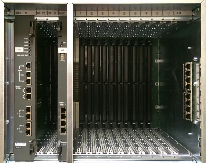 The Media Gateway 1010 (MG1010) is a rack mount Media Gateway chassis that provides a larger amount of card slots than a MG1000E with Media Gateway Expander. The CS1000E Call Server can connect to and control a maximum of 50 MG1010s. Each MG1010 provides a dedicated Gateway Controller slot, two dedicated Server card slots, and ten slots for IPE cards.